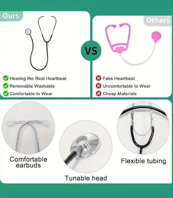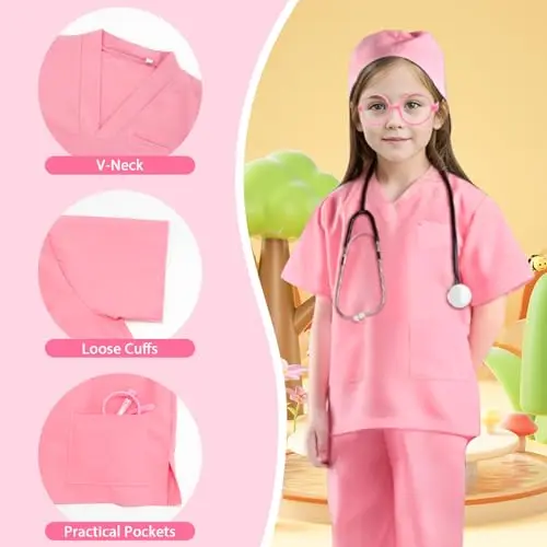 Children's Doctor Costume Set: Our Kids Doctors Costume includes a medical cap, scrubs costume, lab coat, real work stethoscope, mask, and work card. Lightweight Stethoscope and huge pockets to hold more tools, create Hours of Fun Playtime with kids doctor costume kit.